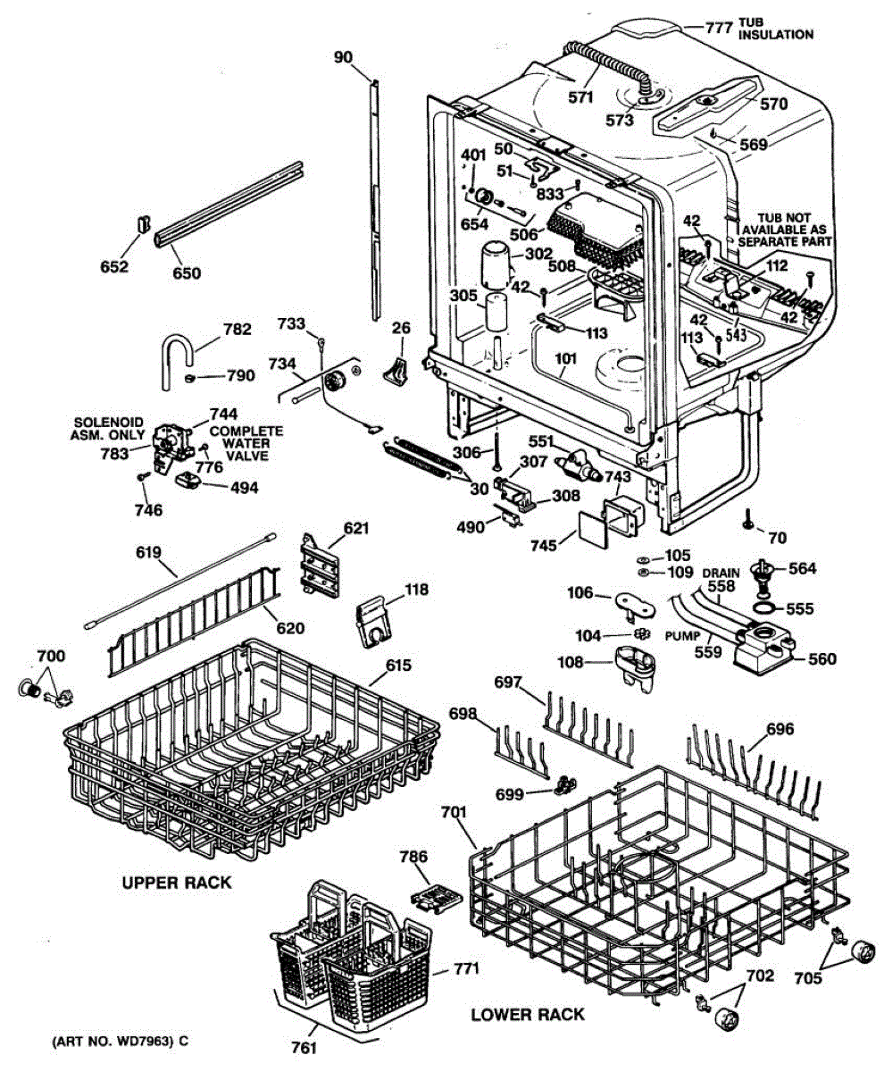 NOTE: Can use dishrack WD28X31819 with silverware basket WD28X265.