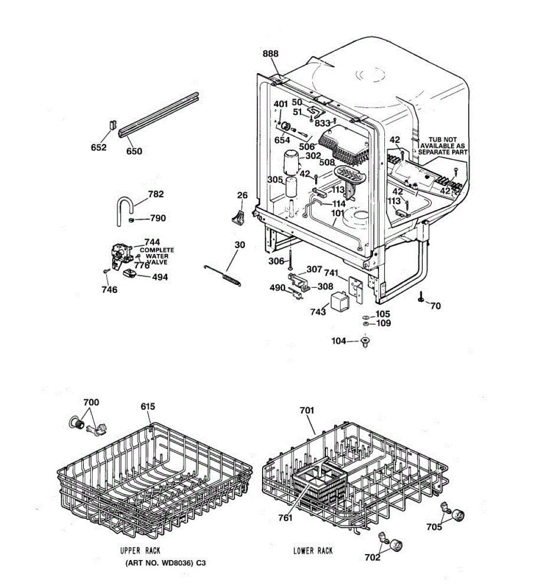 Parts for Ge HDA1000Z00WH: 02 - Body Parts