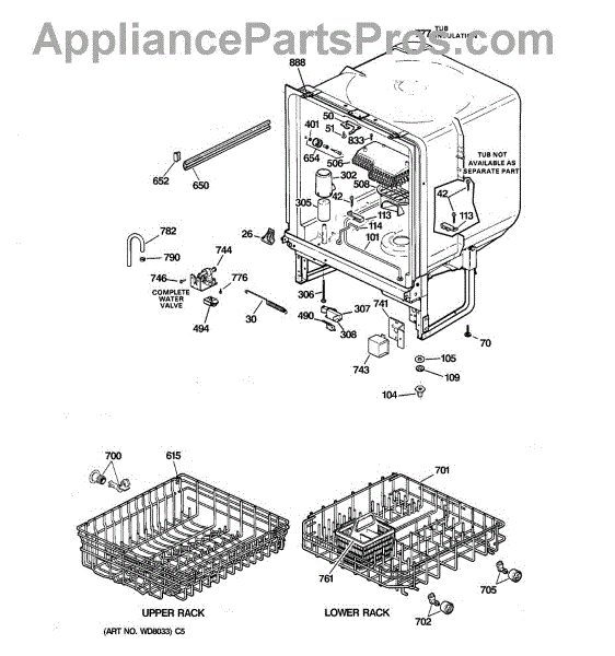 Replace a cracked, rusted, or broken upper dishrack to restore secure organization for cups, glasses, and bowls on your dishwasher's top level.