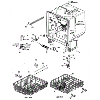 The Upper Rack is an OEM replacement part for GE dishwashers. It provides movable shelf space along the top of the dishwasher interior for washing plates, bowls, and other dishes. The shelves feature an adjustable design that accommodates various sizes and configurations of dishware. Causes of failure include normal wear and tear, accidental impacts that damage shelves or cleaning chemicals stripping away protective coatings. Symptoms of a bad upper rack can include: