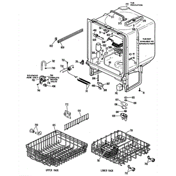 The Upper Rack is an OEM replacement part for GE dishwashers. It provides movable shelf space along the top of the dishwasher interior for washing plates, bowls, and other dishes. The shelves feature an adjustable design that accommodates various sizes and configurations of dishware. Causes of failure include normal wear and tear, accidental impacts that damage shelves or cleaning chemicals stripping away protective coatings. Symptoms of a bad upper rack can include: