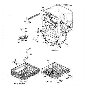 The Lower Dishrack is an OEM part for GE dishwashers. It provides a sturdy shelf for placing pots, pans, plates, and other dishware on the bottom level of the dishwasher interior. The lower dishrack supports dish loads, holding them securely in place during the wash cycles.