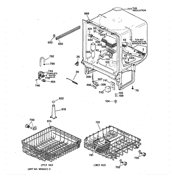 The Lower Dishrack is an OEM part for GE dishwashers. It provides a sturdy shelf for placing pots, pans, plates, and other dishware on the bottom level of the dishwasher interior. The lower dishrack supports dish loads, holding them securely in place during the wash cycles.