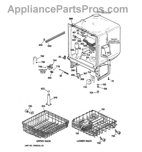 The Lower Dishrack is an OEM part for GE dishwashers. It provides a sturdy shelf for placing pots, pans, plates, and other dishware on the bottom level of the dishwasher interior. The lower dishrack supports dish loads, holding them securely in place during the wash cycles.