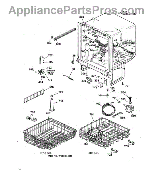 The Upper Rack is an OEM replacement part for GE dishwashers. It provides movable shelf space along the top of the dishwasher interior for washing plates, bowls, and other dishes. The shelves feature an adjustable design that accommodates various sizes and configurations of dishware. Causes of failure include normal wear and tear, accidental impacts that damage shelves or cleaning chemicals stripping away protective coatings. Symptoms of a bad upper rack can include: