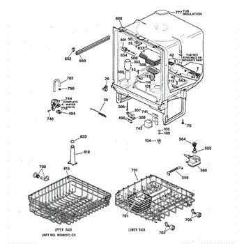 The Lower Dishrack is an OEM part for GE dishwashers. It provides a sturdy shelf for placing pots, pans, plates, and other dishware on the bottom level of the dishwasher interior. The lower dishrack supports dish loads, holding them securely in place during the wash cycles.