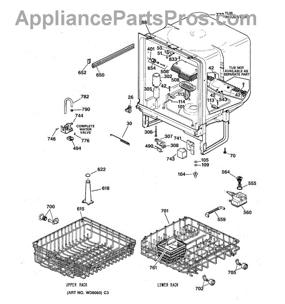 The Lower Dishrack is an OEM part for GE dishwashers. It provides a sturdy shelf for placing pots, pans, plates, and other dishware on the bottom level of the dishwasher interior. The lower dishrack supports dish loads, holding them securely in place during the wash cycles.