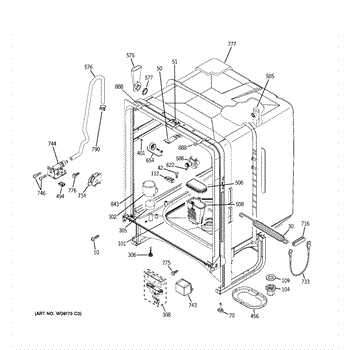 Insulation blanket that wraps around the dishwasher tub to reduce noise and maintain temperature. Replace if damaged, torn, missing, or contaminated.