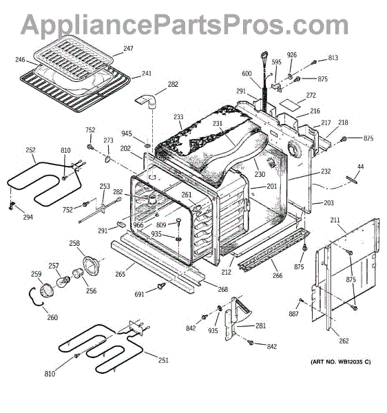 This Back main is the oven's rear chassis panel that supports internal components and protects wiring. It restores structural support and helps prevent contact with hot or moving parts for safe operation. What it does:
