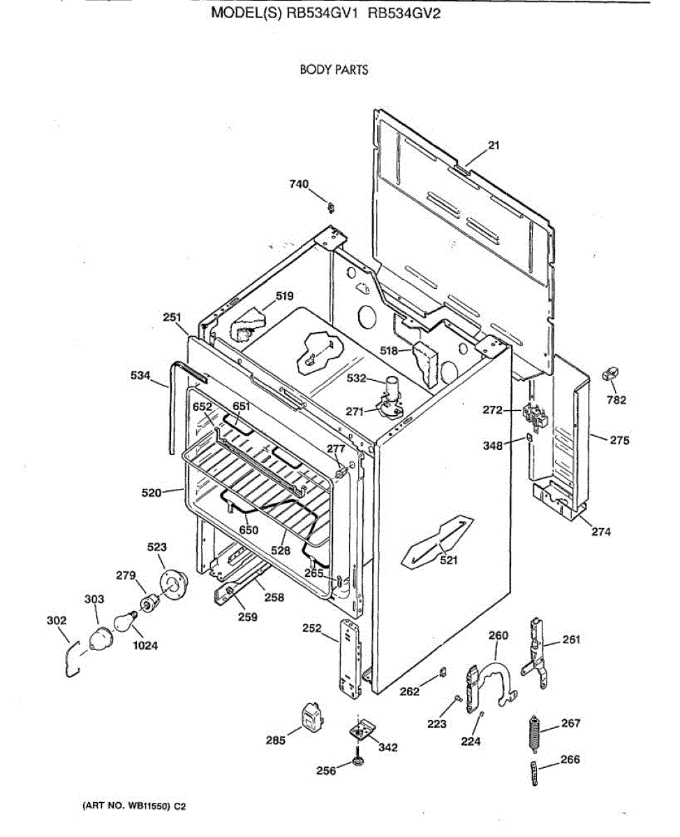 Parts for Ge RB534GV1: 02 - Body Parts