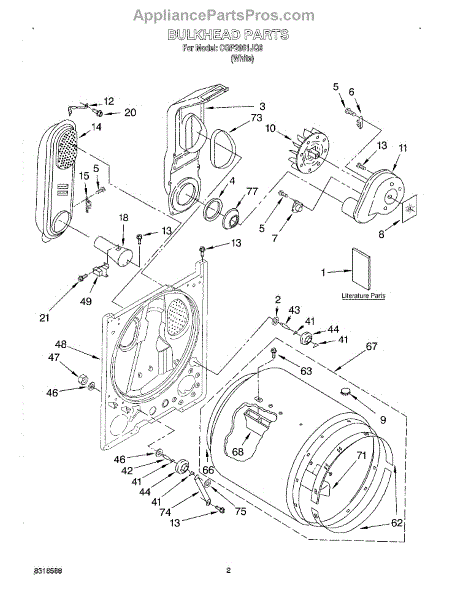 The Bulkhead is an OEM component for Whirlpool dryers. As a structural panel, it secures the rear of the appliance while enabling airflow behind sliding doors.