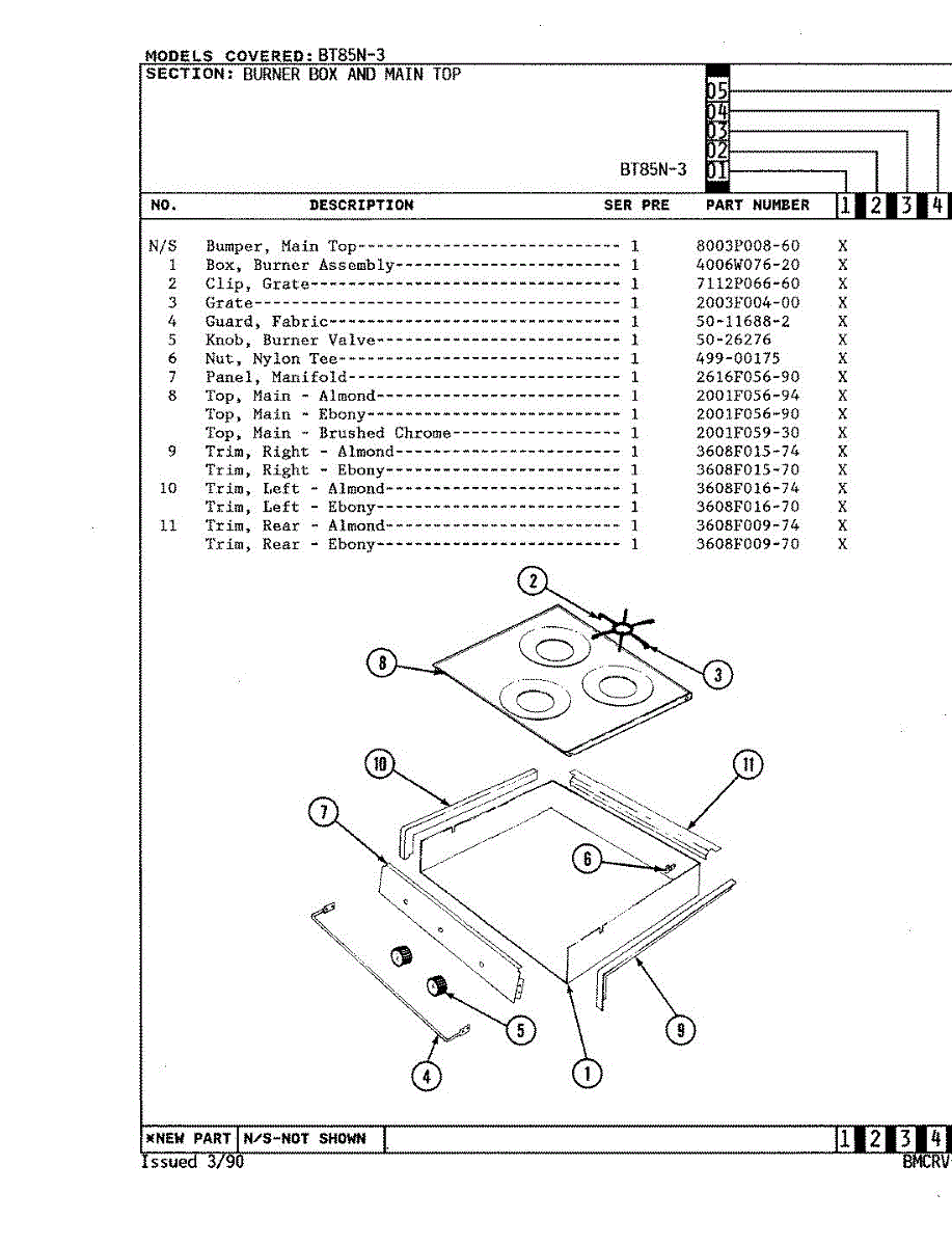 Parts for Magic Chef BT85NS-3: 02 - Burner Box & Main Top Parts