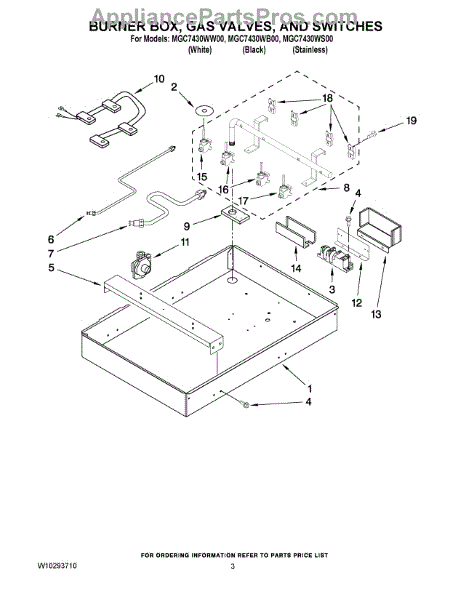 Parts for Maytag MGC7430WB00: 02 - Burner Box, Gas Valves, And Switches Parts
