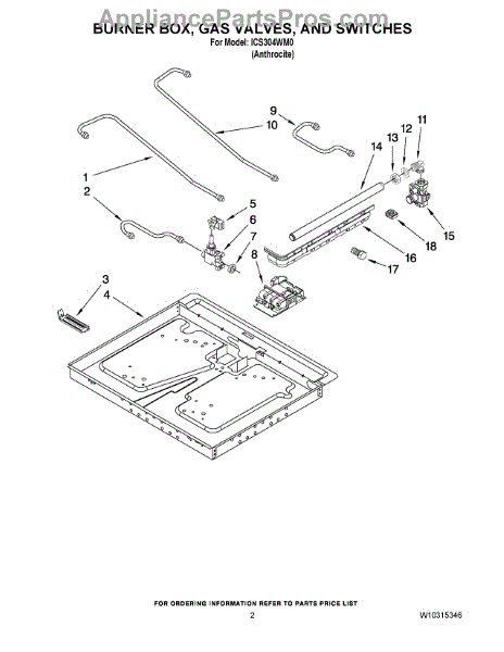 Parts for Whirlpool ICS304WM0: 02 - Burner Box, Gas Valves, And Switches Parts