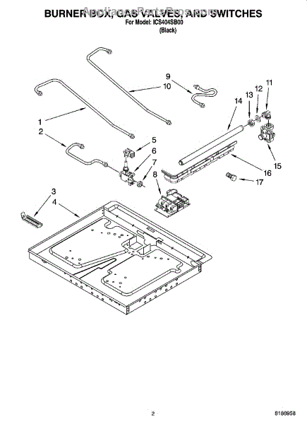 Parts for Whirlpool ICS404SB00: 02 - Burner Box, Gas Valves, And Switches Parts