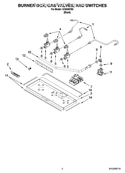 Parts for Whirlpool ICS500VB0: 02 - Burner Box, Gas Valves, And Switches Parts