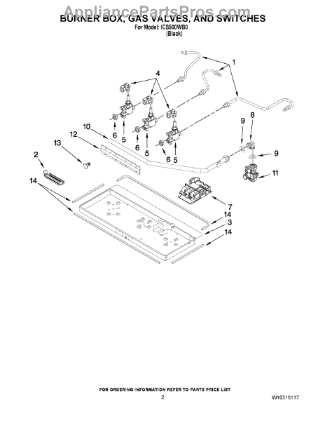 Parts for Whirlpool ICS500WB0: 02 - Burner Box, Gas Valves, And Switches Parts