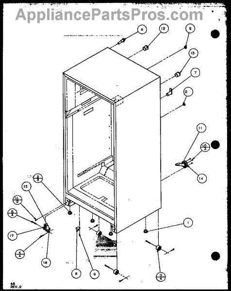 This factory screw secures appliance components to their mounting points. Replace missing, worn, or stripped hardware to restore a tight fit, proper alignment, and quieter operation across the affected assembly.