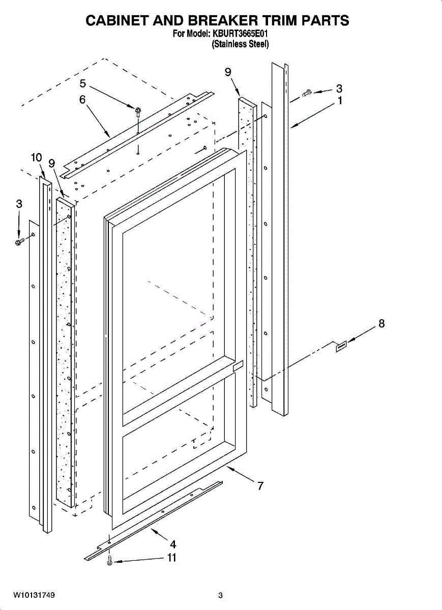 Parts for Kitchenaid KBURT3665E01: 02 - Cabinet And Breaker Trim Parts