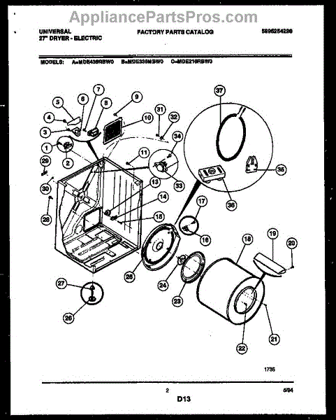 This OEM replacement is also compatible with Electrolux, Gibson, Kelvinator, and Kenmore dryer models.
