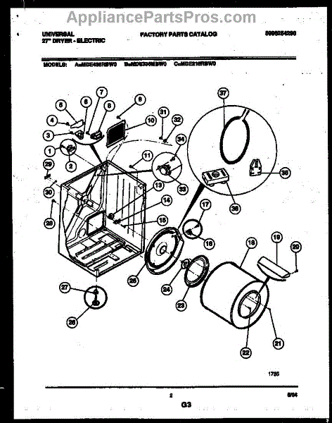 Parts for Frigidaire MDE216RBWD0: 02 - Cabinet And Component Parts