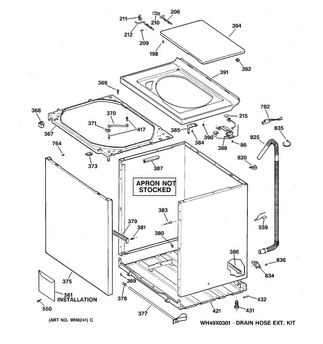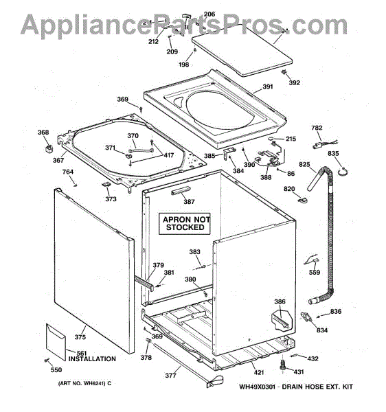 Replacement drain hose for top-load washers. Connects washer to household drainage system. Replace if cracked, leaking, crushed, or missing.