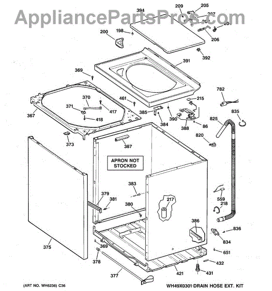 Note: For the entire drain hose, use part number WH41X10096.