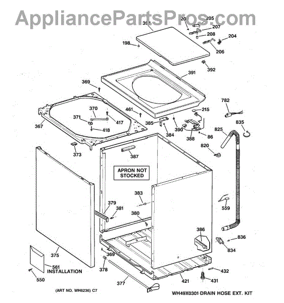 The Washer Top is an OEM part for GE washers. It is the upper panel that covers the internal components of the washing machine and provides a flat surface for loading and unloading laundry.