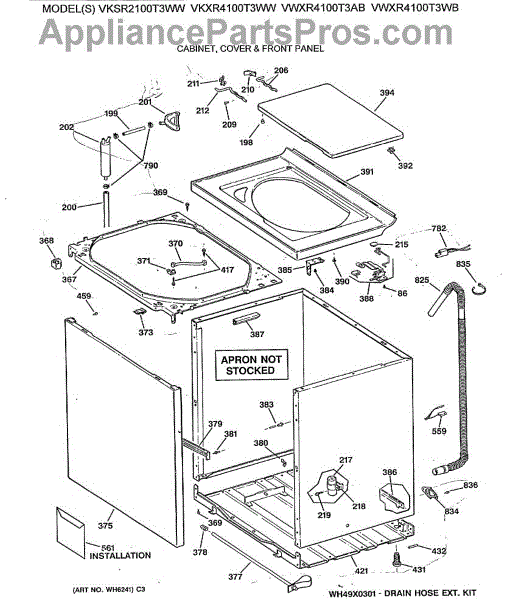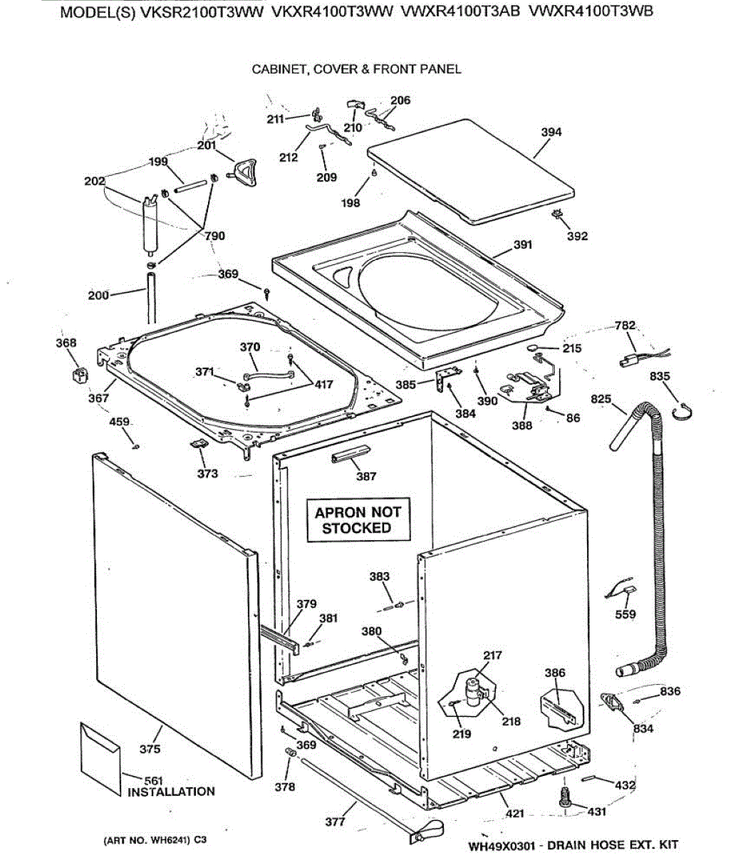 Parts for Ge VKXR4100T3WW: 02 - Cabinet, Cover & Front Panel Parts