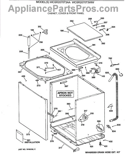 Parts for Ge WCSR2070T3WW: 02 - Cabinet, Cover & Front Panel Parts