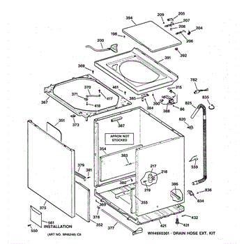 The Washer Top is an OEM part for GE washers. It is the upper panel that covers the internal components of the washing machine and provides a flat surface for loading and unloading laundry.