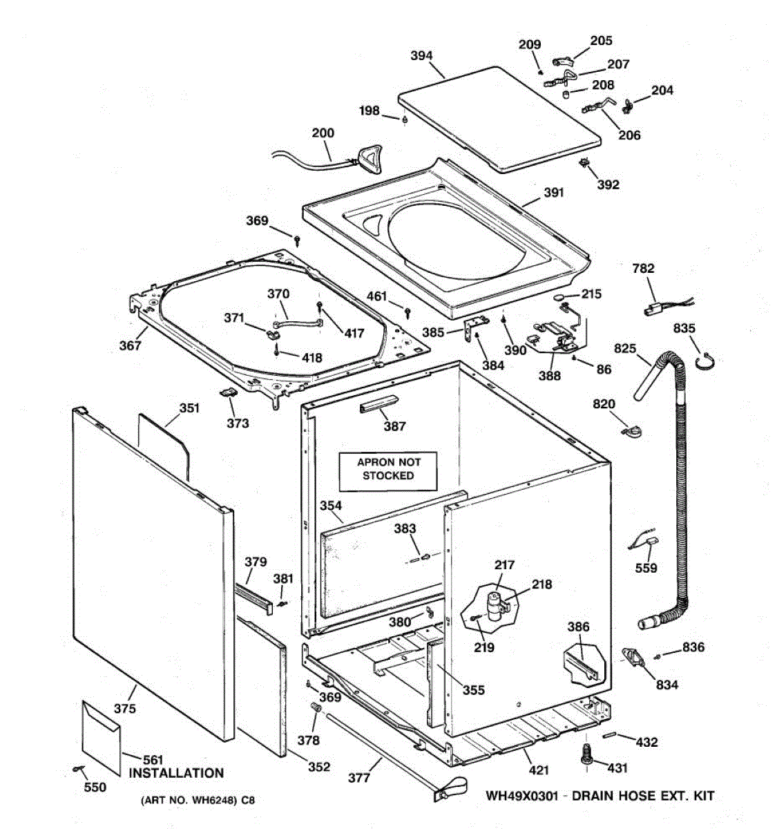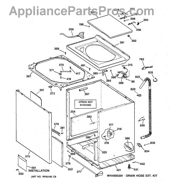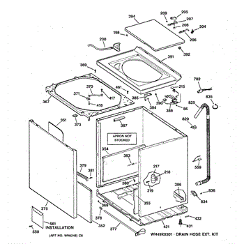 The Washer Top is an OEM part for GE washers. It is the upper panel that covers the internal components of the washing machine and provides a flat surface for loading and unloading laundry.