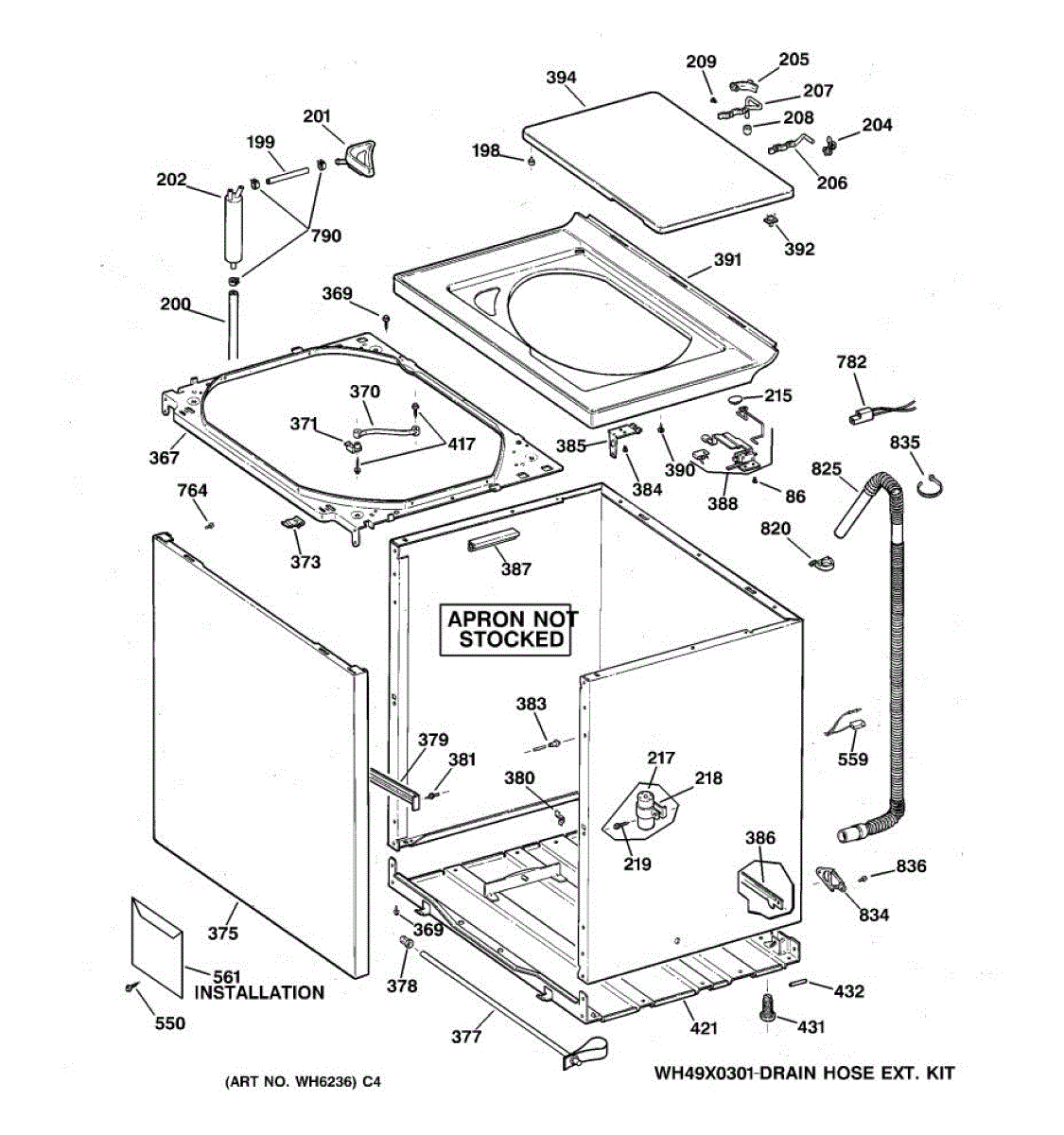 The Washer Top is an OEM part for GE washers. It is the upper panel that covers the internal components of the washing machine and provides a flat surface for loading and unloading laundry.