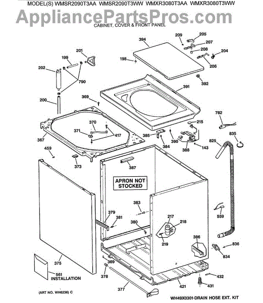 Parts for Ge WMXR3080T3AA: 02 - Cabinet, Cover & Front Panel Parts