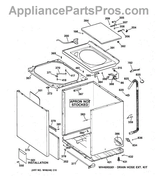 The Washer Top is an OEM part for GE washers. It is the upper panel that covers the internal components of the washing machine and provides a flat surface for loading and unloading laundry.