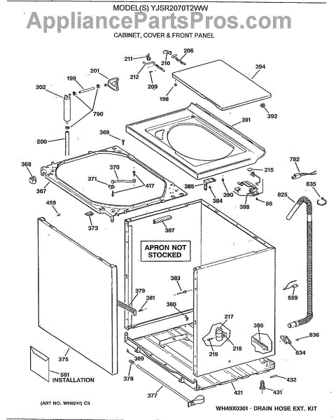 Note: For the entire drain hose, use part number WH41X10096.