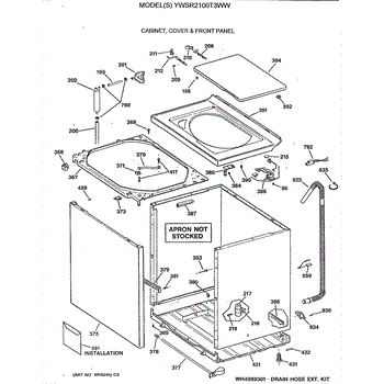 Outer tub cover kit for washers. Includes bleach funnel, clamps, wire tie, and cap. Replace if cracked, broken, or missing components after repair work.