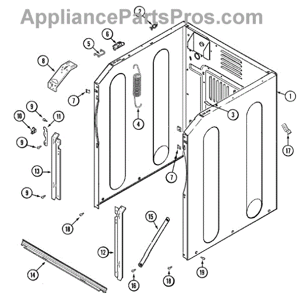 This spring support secures a suspension spring to the washer's frame, helping keep the tub stable during wash and spin. Replacing a damaged support restores proper balance control to reduce vibration and banging. What it does: