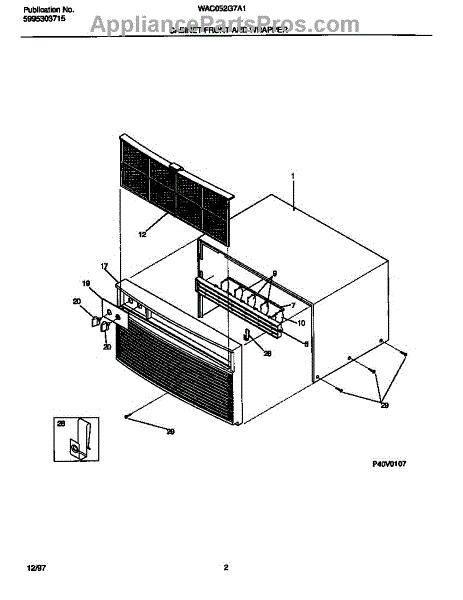 Parts for Frigidaire WAC052G7A1: 02 - Cabinet Front And Wrapper Parts
