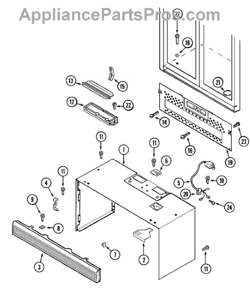 This grill mounts above the door and the control panel.