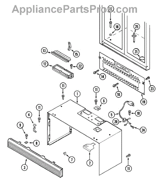 This grill mounts above the door and the control panel.