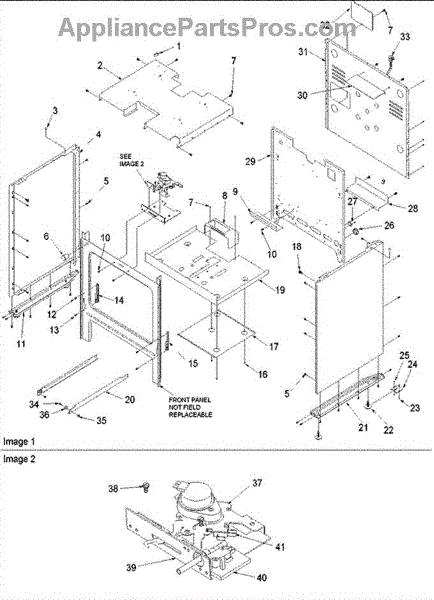 Mounting screw secures panels, brackets, and trim to the appliance frame. Replace if screw is stripped, missing, or damaged to restore secure fastening.