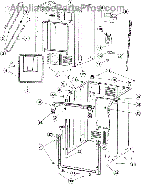 This cabinet spring secures the appliance cabinet to the frame to control movement and vibration. Replacing a fatigued or broken spring restores cabinet stability and helps reduce rattling and excessive shaking during operation.