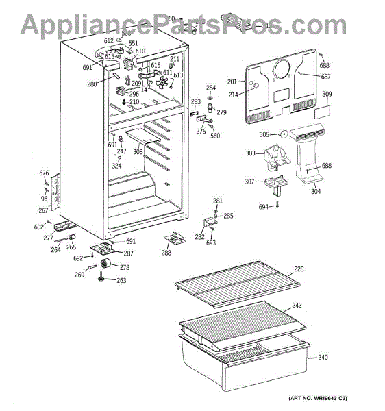 The Foam Duct is an OEM replacment part for GE refrigerators. It is an insulating conduit located within the fresh food compartment that helps direct chilled air circulation from evaporator coils throughout interior shelves and bins. The foam duct plays an important temperature regulation role by strategically venting cool air where needed. Causes can involve cracks in rigid duct walls, compressed insulation, or obstructions within the airflow pathway restricting proper circulation Symptoms of a defective duct include: