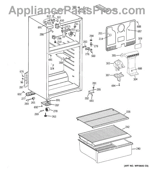 The Foam Duct is an OEM replacment part for GE refrigerators. It is an insulating conduit located within the fresh food compartment that helps direct chilled air circulation from evaporator coils throughout interior shelves and bins. The foam duct plays an important temperature regulation role by strategically venting cool air where needed. Causes can involve cracks in rigid duct walls, compressed insulation, or obstructions within the airflow pathway restricting proper circulation Symptoms of a defective duct include: