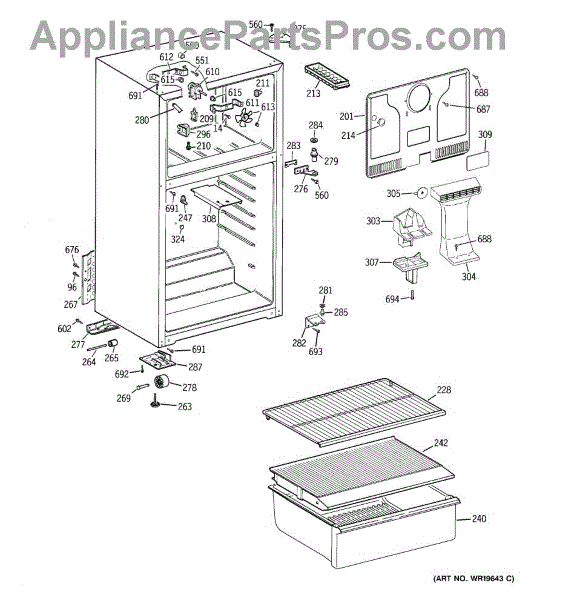The Foam Duct is an OEM replacment part for GE refrigerators. It is an insulating conduit located within the fresh food compartment that helps direct chilled air circulation from evaporator coils throughout interior shelves and bins. The foam duct plays an important temperature regulation role by strategically venting cool air where needed. Causes can involve cracks in rigid duct walls, compressed insulation, or obstructions within the airflow pathway restricting proper circulation Symptoms of a defective duct include: