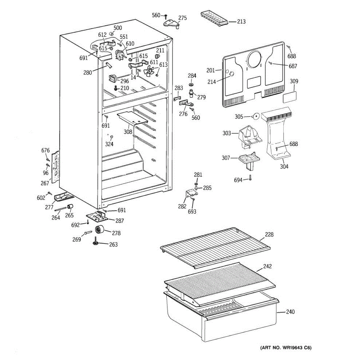The Foam Duct is an OEM replacment part for GE refrigerators. It is an insulating conduit located within the fresh food compartment that helps direct chilled air circulation from evaporator coils throughout interior shelves and bins. The foam duct plays an important temperature regulation role by strategically venting cool air where needed. Causes can involve cracks in rigid duct walls, compressed insulation, or obstructions within the airflow pathway restricting proper circulation Symptoms of a defective duct include: