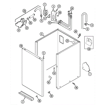 This small strainer sits inside the washer's water inlet valve and screens out sand, rust, and sediment from the supply lines. Replacing a clogged or missing screen restores normal fill flow and helps protect the valve.