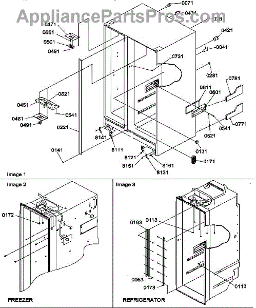 Parts for Amana SRDE27TPSE / P1190604W E: 02 - Cabinet Parts
