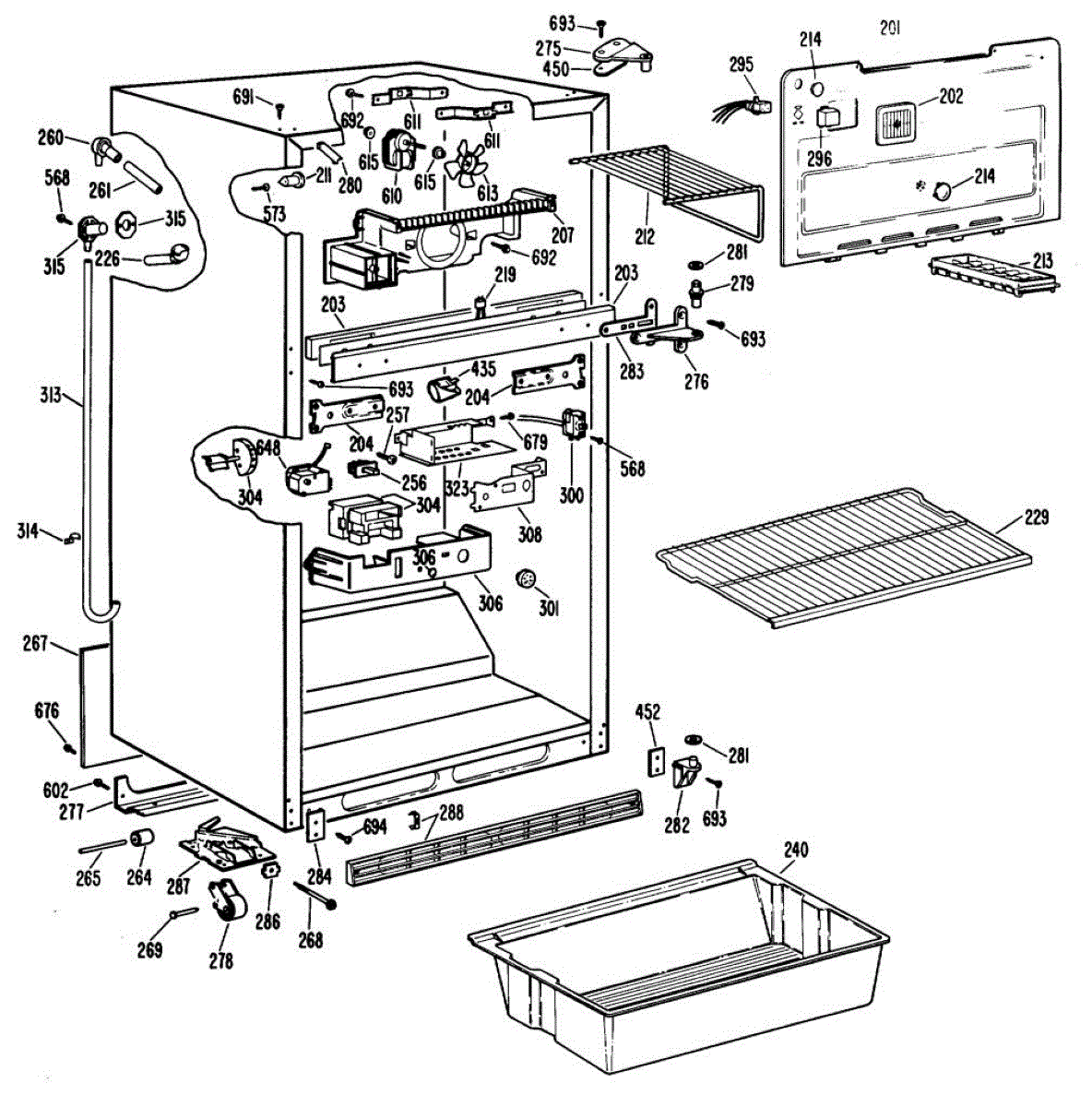 • Remove freezer shelves/ice bin and the rear panel to access the fan assembly